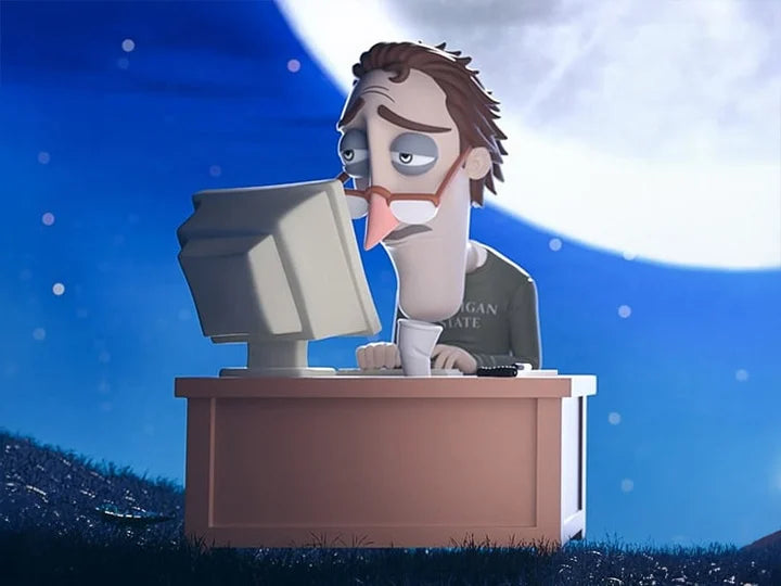 Con su suéter verde musgo, jeans desgastados y sandalias de "ya me rendí con la moda", esta figura es un retrato perfecto del “funcionamiento bajo presión”. Youtooz lo empacó en una caja que lo dice todo: habitación sombría, bichos, enredaderas, y un packaging tan detallado que hasta el estrés es palpable.