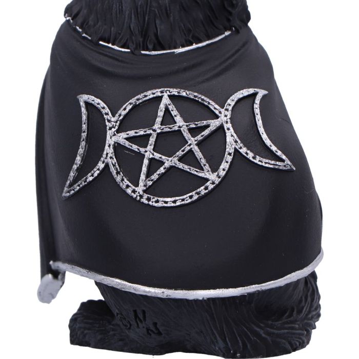 Presenta una criatura misteriosa vestida de negro, detallada con símbolos góticos plateados y elaborada con resina de alta calidad.