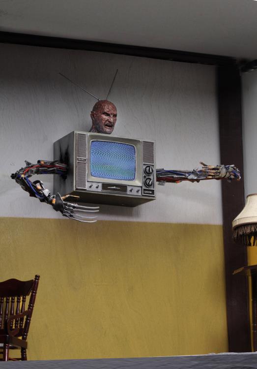 Freddy TV (como se ve en Dream Warriors): puede montarse en una pared de diorama o mostrarse en un escritorio o estante. Los brazos están articulados y la antena en la cabeza de Freddy se puede colocar.