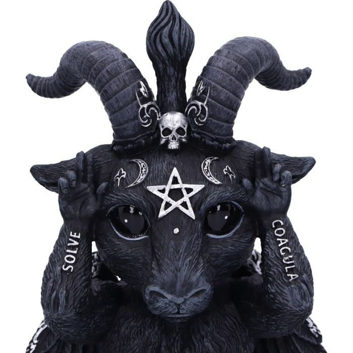 Disponibles exclusivamente en Nemesis Now, estas figuras de los Tres Sabios Baphoboo. Sentados uno al lado del otro, uno cubriéndose la boca, otro los ojos y el otro las orejas, estos hermafroditas con cabeza de cabra llevan las palabras latinas SOLVE y COAGULA. Adorado por ocultistas, desde los Templarios de Jacques de Molay hasta Alistair Crowley, Baphomet ha sido durante mucho tiempo un símbolo de la herejía del librepensamiento y el conocimiento prohibido. Fundidos en resina de alta calidad y pintados a mano con maestría, estos tres sabios Baphomet son perfectos para cualquier amante de la espiritualidad.