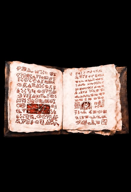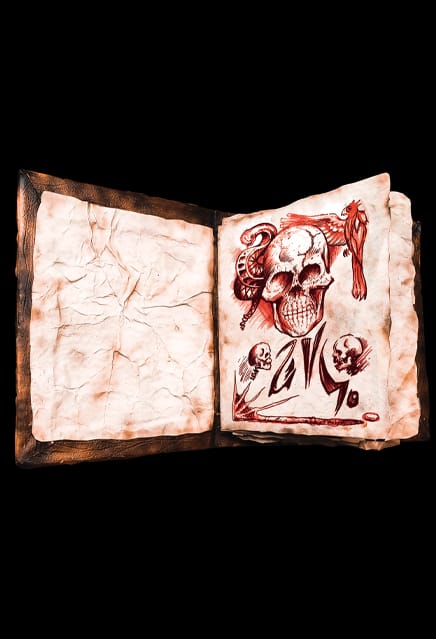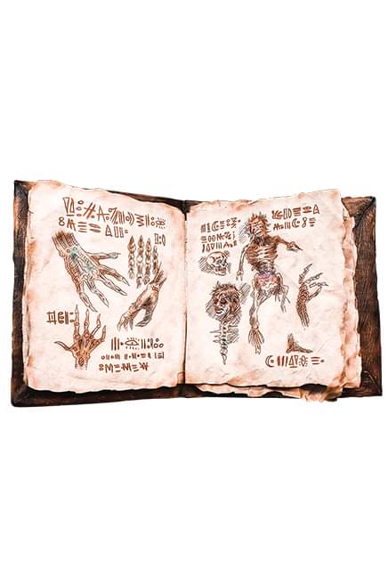Desde Evil Dead 2, Trick or Treat Studios te trae la réplica oficial de Necronomicon del Libro de los Muertos. Esculpida por Russ Lukich, esta réplica a gran escala de Necronomicon se abre y cierra y viene con 36 páginas impresas que representan las ilustraciones.